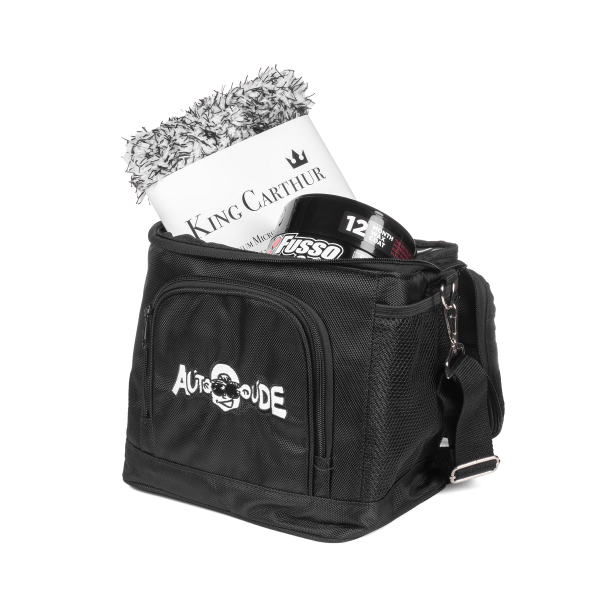 Autodude Detailing bag er en flott bag for eksempel til transport/oppbevaring av de viktigste vasketingene. Takket være bærehåndtaket og skulderreimen, er den lett å bære. Bagen er designet for å romme de viktigste tingene, og har plass til f.eks. noe flasker, en vaskehanske, et par børster, mikrofiberkluter og en voksboks. Kjekk å ha for eksempel i bilen på vei til og fra hytta eller når man er på ferietur. Den gummierte innsiden av bagen sikrer for eksempel at rengjøringsmidlene eller en våt vaskehanske ikke søler vann på utsiden av bagen. Selvfølgelig gjør bagen det mulig å lagre vaskeutstyr på en iøynefallende måte hjemme også! Et må-ha-tilbehør for alle detailere!