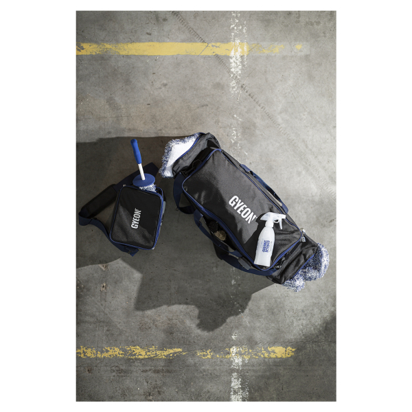 Gyeon Q²M Detailing Bag Large er en bilpleiebag av høy kvalitet fra Gyeon med god oppbevaringsplass, som trygt kan inneholde alle materialene og tilbehør som trengs for bilpleie. Det er et utmerket verktøy, for eksempel for de som driver med mobilt bilpleiearbeid eller for de som ønsker å holde orden på produktene sine. I tillegg til holdbarheten sørger de syntetiske materialene i bagen enkel rengjøring. Vesken har to praktiske bærehåndtak, og en avtakbar skulderrem for enkel bæring. Mål: 50 x 22 x 30 cm.