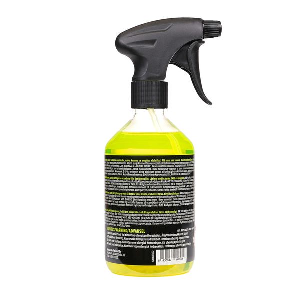 CAR5 Wheel Cleaner er veldig enkel å bruke, uavhengig av ferdighetsnivå. Produktet er ferdigblandet og sprayes direkte på overflaten som skal behandles, det anbefales å la den virke i noen minutter før det skylles av. CAR5 Wheel Cleaner blir lilla når den reagerer med jernbasert smuss og viser dermed tydelig hvor smusset har samlet seg. Hvis dette er første gang du utfører flyverustfjerner på bilen din, vil den sannsynligvis være helt dekket av lilla eller rødt middel, noe som kan se skummelt ut, men det er bare middelet som gjør jobben sin. I tillegg er CAR5 Wheel Cleaner biologisk nedbrytbart, noe som betyr at den kan brukes trygt til utendørsvask i hagen. Plastflasken og spraymunnstykket kan resirkuleres og sorteres som plast.