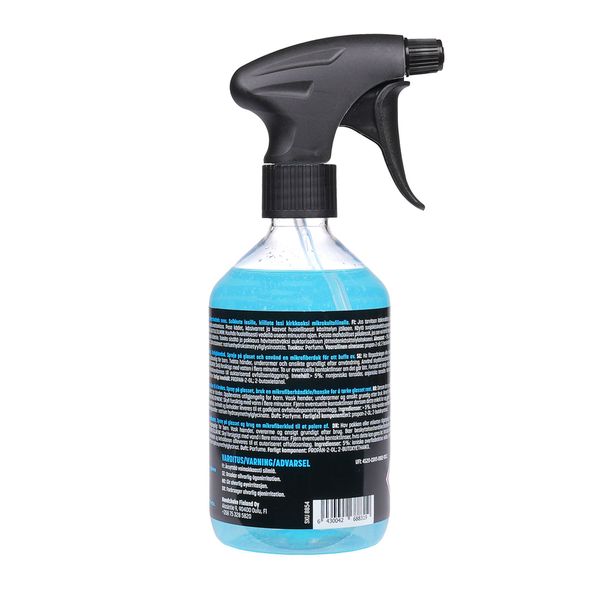 OBS! Ikke bruk i direkte sollys eller varme overflater. Ikke la middelet tørke på overflaten som skal behandles og oppbevar flasken frostfritt.