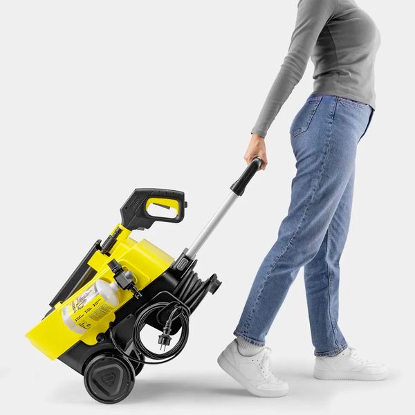Kompakt høytrykksspyler utstyrt med smarte og ergonomiske funksjoner, noe som gjør den egnet for hjemmebruk. Egnet for vask av biler, sykler, firehjulinger, mopeder, utemøbler, fliser m.m. Praktisk 4-i-1-spolelanse, selvsugende pumpe og justerbart trykk og vannmengde.