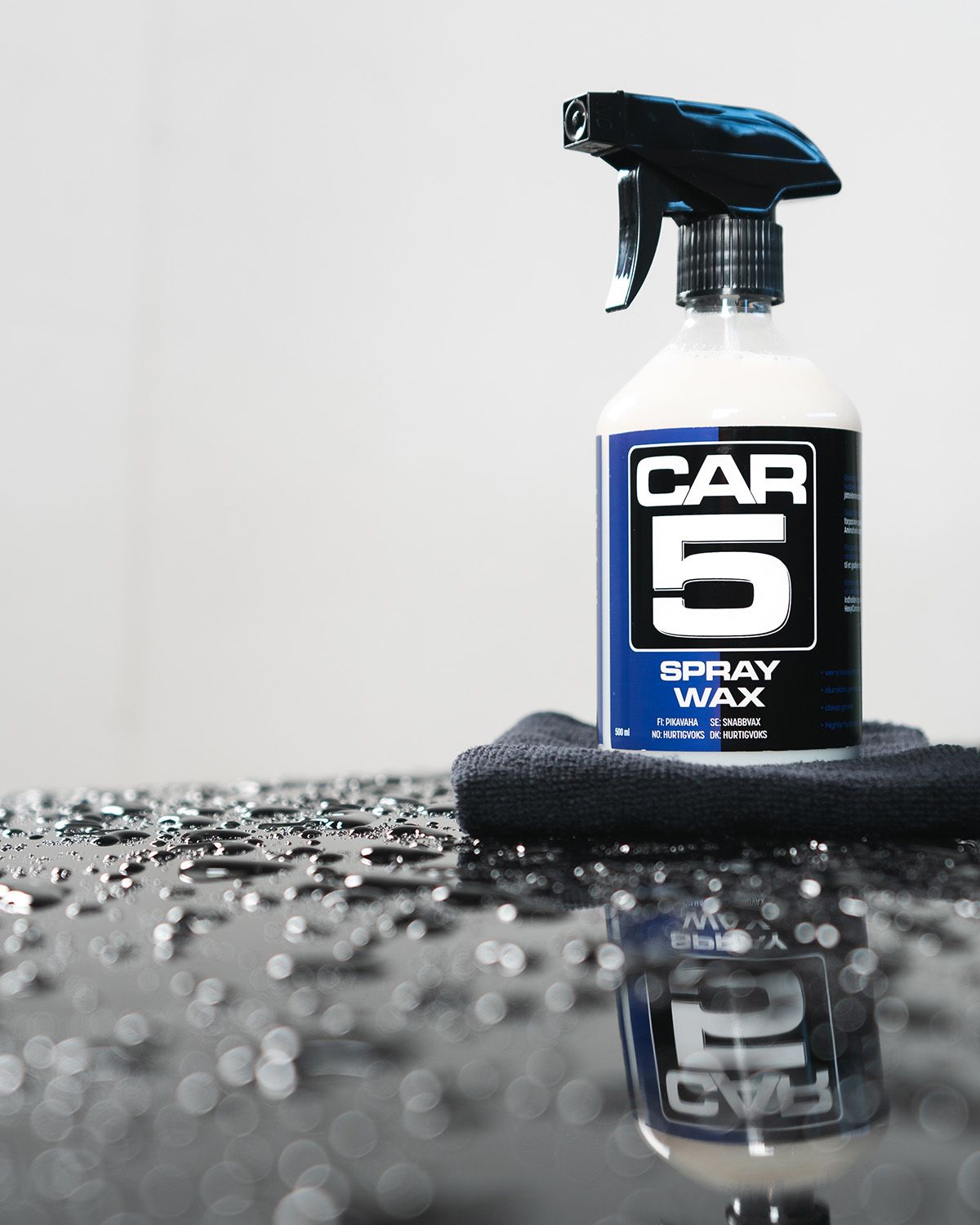 CAR5 Spray Wax er en veldig brukervennlig, holdbar og kostnadseffektiv løsning for å beskytte bilens lakk. Middelet danner en holdbar, keramisk binding på lakken som kan beskytte i opptil 3 måneder med en enkelt behandling. I tillegg til å danne et beskyttende lag, øker CAR5 Spray Wax glansen og gjør fargen på lakken dypere og rikere. CAR5 Spray Wax er først og fremst utviklet med sikte på å gi en enklest mulig beskyttelse, og er egnet for både profesjonelle og nye bilpleiere takket være evnen til å kombinere ytelse og samtidig være så enkel å bruke. Fordi middelet er veldig hydrofobisk, gir det lakkoverflaten en fin vannavvisende overflate, noe som gjør det enda vanskeligere for smuss å holde seg til lakken, som igjen holder bilen ren lenger. Høy hydrofobisitet letter også vedlikeholdsvask og reduserer risikoen for riper. I tillegg til dette er CAR5 Spray Wax veldig kostnadseffektivt, bare noen få sprayer er nok til å dekke f.eks. en hel sidedør. I tillegg er produktet biologisk nedbrytbart, noe som betyr at det er trygt å bruke når du vasker utendørs i hagen.
