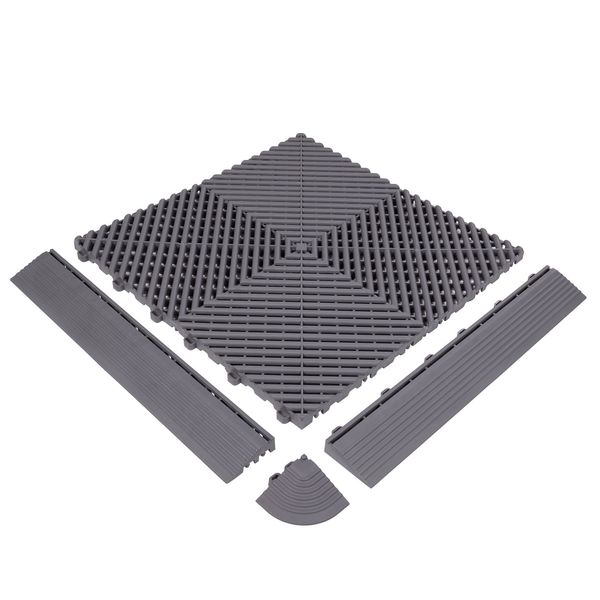 Dr Dirt Garage Plaza HD-kantlisten med hannbrakett gir installasjonen et pent og ferdig utseende, samtidig som den sikrer en sømløs overgang for utstyr med hjul og reduserer risikoen for å snuble. Monteringen er enkel og smidig, ettersom kantlistene enkelt festes med klikkfester, akkurat som gulvflisene, uten behov for lim. Kantlistene er laget av slitesterk polypropylen, tåler store belastninger og egner seg for både innendørs og utendørs bruk. HD Plaza-serien er en allsidig løsning som er ideell for garasjer, lagerrom, vaskerom og til og med utstillingslokaler. Disse kantlistene er designet for Dr Dirt Garage Plaza HD-garasjegulvet.