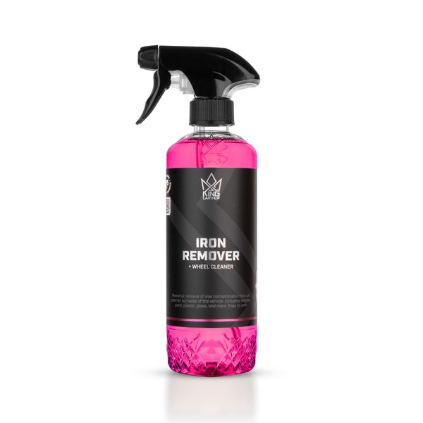 King Carthur Iron Remover er en hurtigvirkende og effektiv, men skånsom kombinert metallpartikkelfjerner og feglrenser. Middelet fjerner alt jernbasert smuss fra bremsestøv til nedsunkede metallpartikler raskt og effektivt fra både felger og lakkoverflaten. Det er ingen grunn til å bekymre seg for holdbarheten til voksoverflaten, da stoffet også er helt vokssikkert. I tillegg til de jernreaktive ingrediensene inneholder den effektive rengjøringsmidler, f.eks. selv hardt sittende smuss løser seg av med bremsestøvet i samme behandling. King Carthur Iron Remover er egnet for å fjerne metallpartikler fra både felger og lakkoverflater.