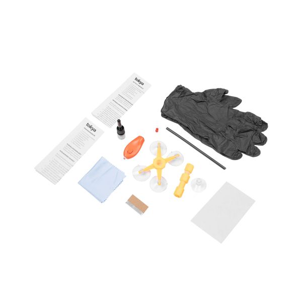Settet inneholder komplett tilbehør og detaljerte instruksjoner som hjelper deg med å lykkes. Skaden eller sprekket fylles med en reparasjonsharpiks av høy kvalitet som effektivt trenger inn i selv de minste mikrosprekker og gir et holdbart resultat. Ettersom harpiksen har samme struktur som glass og binder seg svært godt til glassoverflaten, blir reparasjonen både holdbar og nesten usynlig. Overflaten på frontruten blir glatt, og risikoen for at sprekken sprer seg elimineres. Tokya Windscreen Repair Kit er et svært rimelig og enkelt alternativ til en kostbar utskifting av hele frontruten!